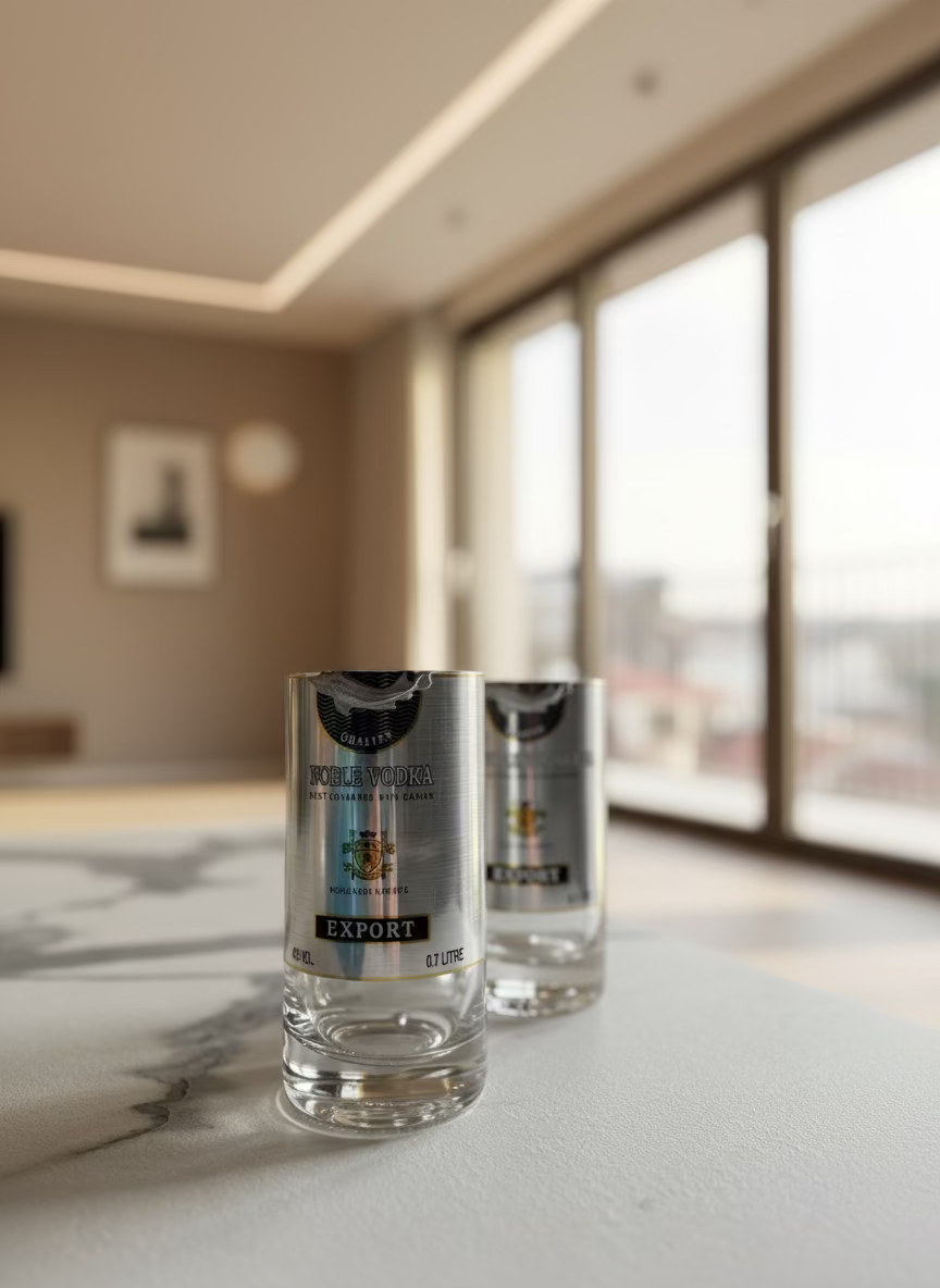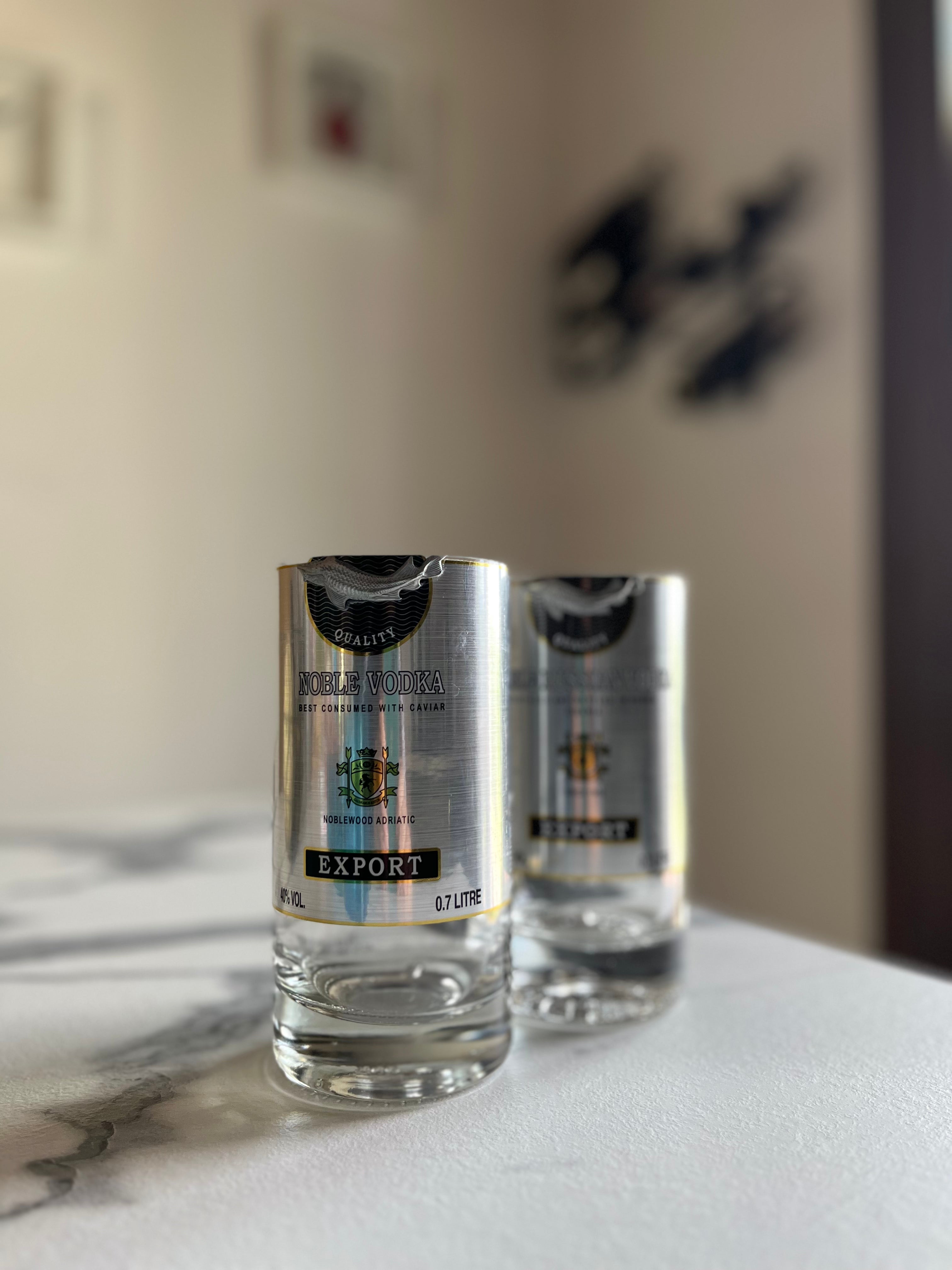 Questi bicchieri esclusivi nascono da bottiglie di Vodka Beluga da 700ml, trasformate in eleganti bicchieri da tavola. Il prestigio del brand Beluga si unisce al design sostenibile per creare pezzi unici e raffinati.
