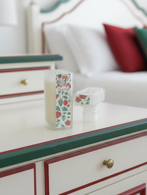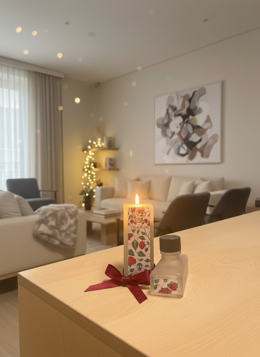 La colatura della cera naturale composta da soia, viene fatta manualmente e dopo un lungo procedimento volto a chiudere ogni buco e alla decorazione, viene messa a disposizione sullo shop. Il taglio e la levigatura del vetro vengono curati in maniera maniacale per renderla "morbida" al tatto ed evitare tagli per chi la tocca. Le piccole imperfezioni donano alla stessa, l'unicità che merita ognuno di questi pezzi.