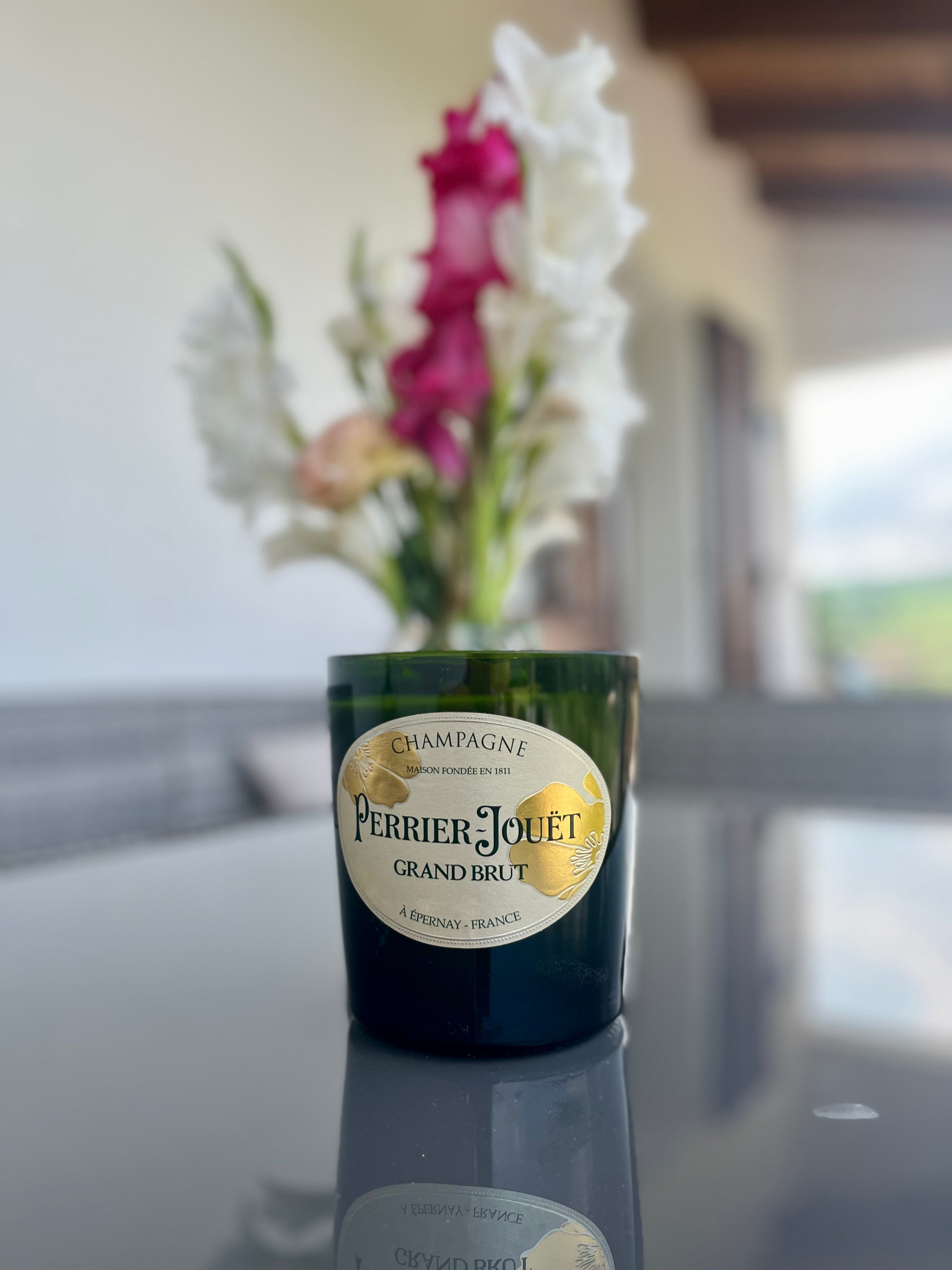 La colatura della cera naturale composta da soia, viene fatta manualmente e dopo un lungo procedimento volto a chiudere ogni buco e alla decorazione, viene messa a disposizione sullo shop. Il taglio e la levigatura del vetro vengono curati in maniera maniacale per renderla "morbida" al tatto ed evitare tagli per chi la tocca. Le piccole imperfezioni donano alla stessa l'unicità che merita ognuno di questi pezzi.