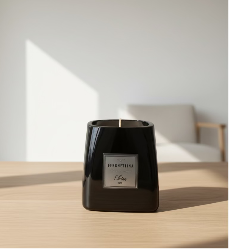 La colatura della cera naturale composta da soia, viene fatta manualmente e dopo un lungo procedimento volto a chiudere ogni buco e alla decorazione, viene messa a disposizione sullo shop. Il taglio e la levigatura del vetro vengono curati in maniera maniacale per renderla "morbida" al tatto ed evitare tagli per chi la tocca. Le piccole imperfezioni donano alla stessa l'unicità che merita ognuno di questi pezzi.