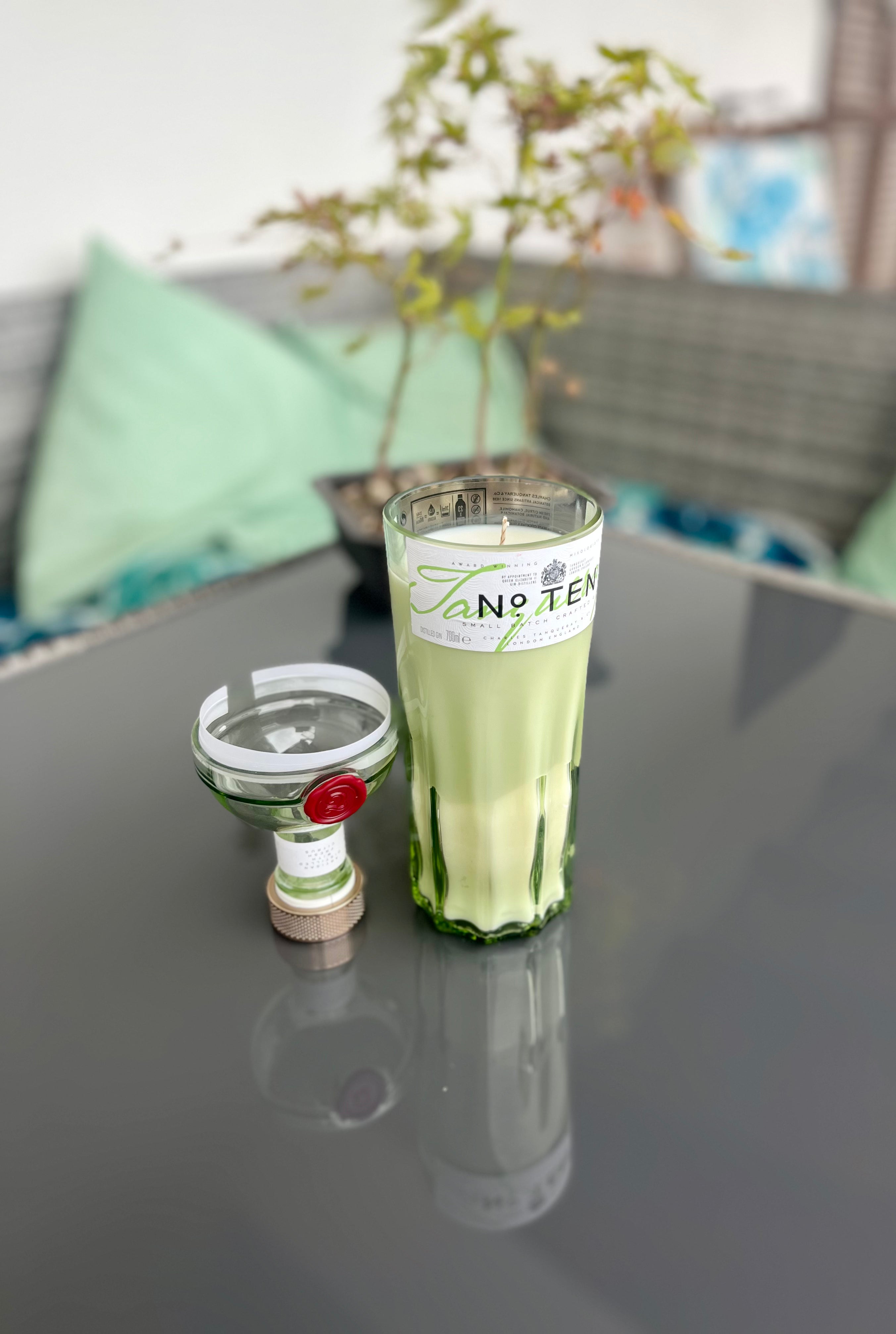 La colatura della cera naturale composta da soia, viene fatta manualmente e dopo un lungo procedimento volto a chiudere ogni buco e alla decorazione, viene messa a disposizione sullo shop. Il taglio e la levigatura del vetro vengono curati in maniera maniacale per renderla "morbida" al tatto ed evitare tagli per chi la tocca. Le piccole imperfezioni donano alla stessa l'unicità che merita ognuno di questi pezzi.