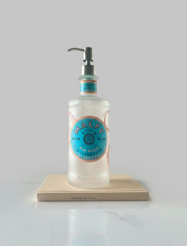Porta l'eleganza italiana nel tuo bagno con questo dispenser sapone artigianale realizzato da un'autentica bottiglia di Malfy Gin da 700ml.