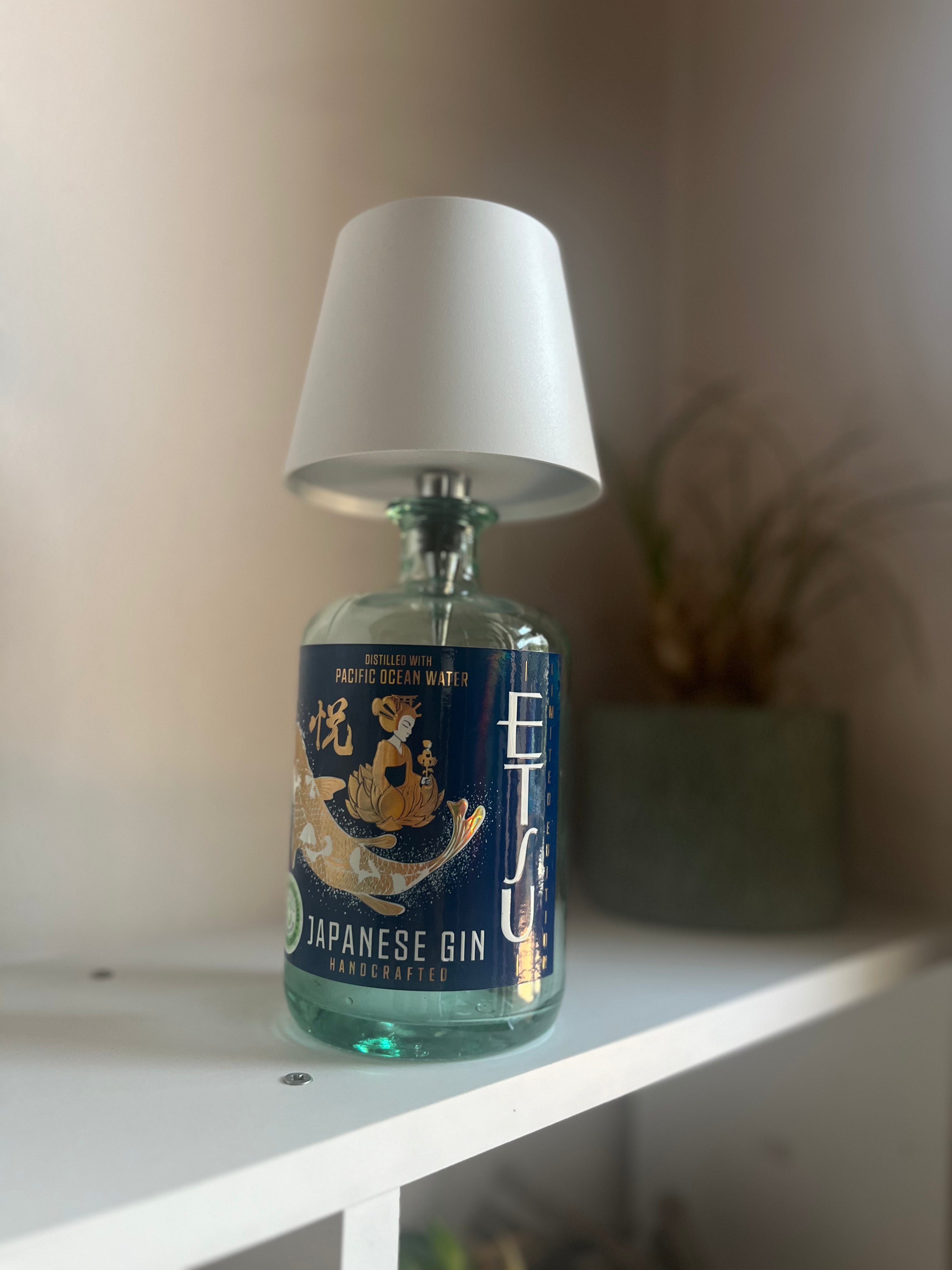 Questa lampada non ha necessità di essere collegata alla rete elettrica, il paralume color bianco funge da lampadina dimmerabile (tre gradazioni di colore). Presenta un foro per inserire e ricaricare il paralume all’evenienza, il cavo di ricarica è incluso.