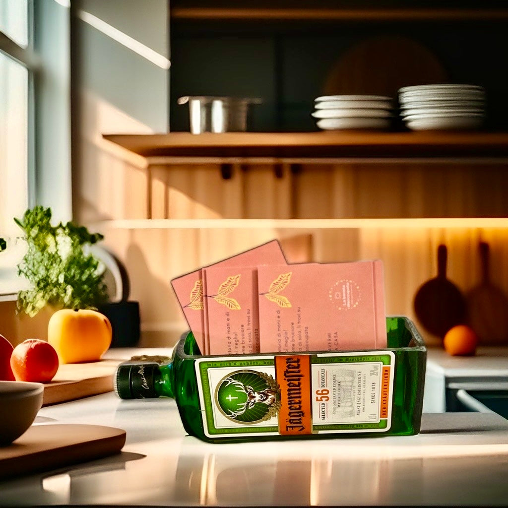 Ogni creazione nasce da bottiglie recuperate e lavorate a mano nel mio laboratorio. Nessun pezzo è identico all’altro: quello che scegli è davvero unico.