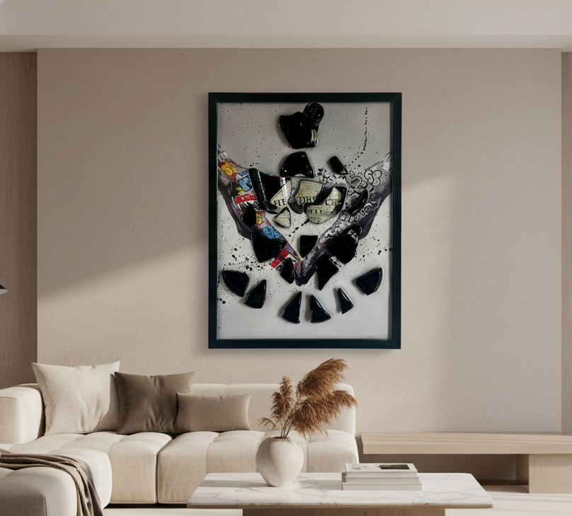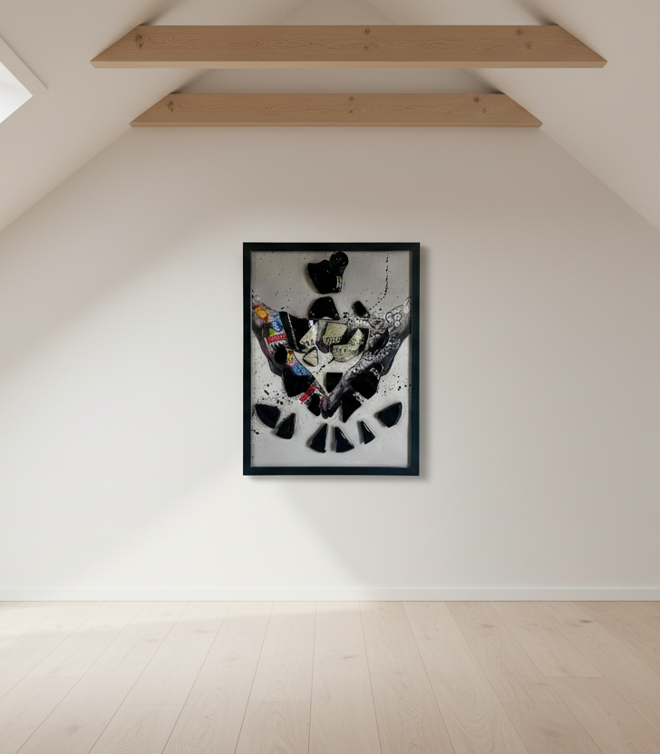 Celebra l'iconico gin Hendrick's con questo quadro di design esclusivo, realizzato interamente a mano con lavorazione artigianale. "Hendrick's in Peace" è un pezzo unico che unisce eleganza british, arte del riciclo e stile contemporaneo.